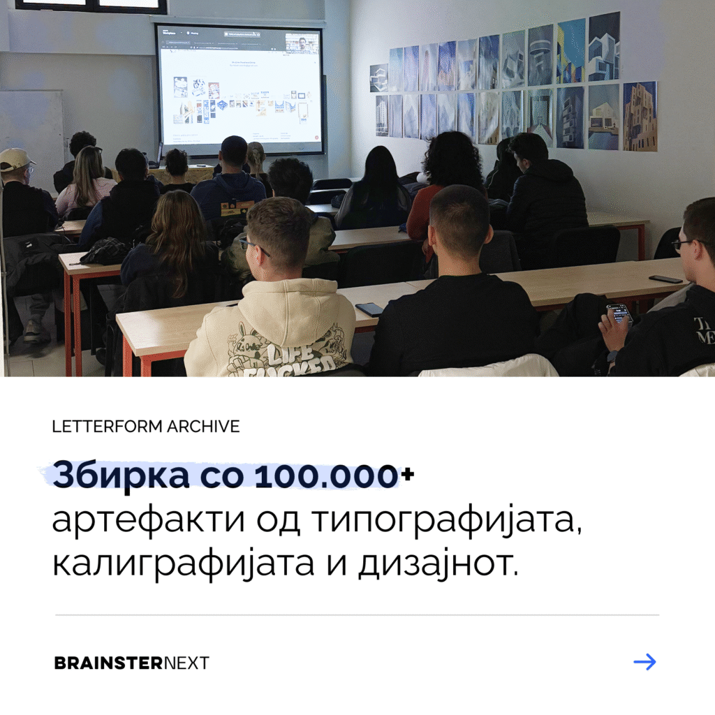 За потребите на хакатонот, студентите присуствуваа и на виртуелна тура со Letterform Archive — дигитална збирка со над 100.000 артефакти поврзани со lettering, типографија, калиграфија и графички дизајн.