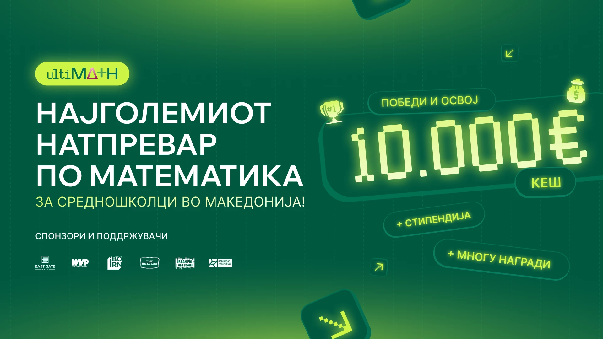 Ова е клучниот предизвик на „UltiMATH“ кој ќе прерасне во годишен натпревар организиран од факултетот „Brainster Next“ и NU College – Првиот колеџ за средношколци во Македонија. Покрај мерењето на знаењето на средношколците, „UltiMATH” е привлечен и поради наградата од 10 илјади евра во кеш како и 100% стипендија што целосно ќе го покрие студирањето на „Brainster Next“ факултетот за најдобриот математичар.